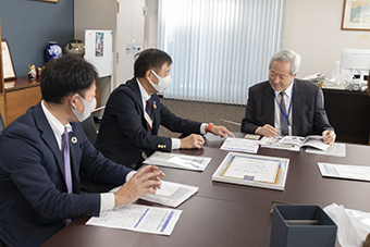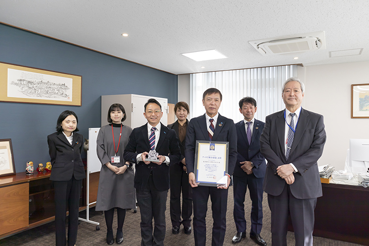 企業のメセナ(文化・芸術の援護活動)を顕彰する「メセナアワード2020」の優秀賞に、鬼塚電気工事株式会社「プロジェクトONICO」が選ばれ、12月7日(月)に本学小手川大助学長に、受賞報告がありました。