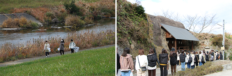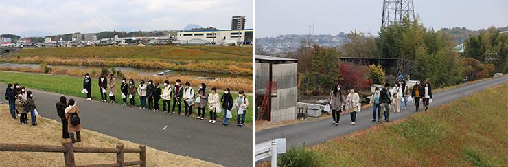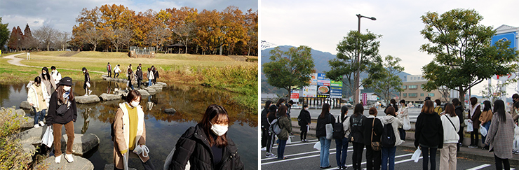 また、企画した学生が「稙田地区とわさだタウン」「七瀬川と七瀬川公園」「大分の石仏と高瀬石仏」の各周辺地域を事前に調べた内容を発表し、街や観光について理解を深めました。