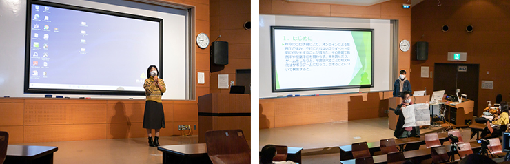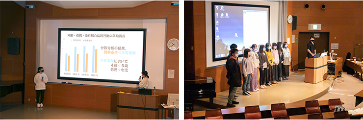 今年度は新型コロナウイルス感染症対策のため、1年生や当日発表のない学生はオンラインでの参加となりました。