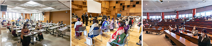 また、感染リスクを極力抑えるため、大勢の学生が同時に学内に集まらないオンライン授業を初めて導入しました。教職員が創意工夫した授業、保護者の皆さんの暖かい励ましとご支援、そして学生の皆さんの感染症防止対策のおかげで、感染した学生もなく、本日を迎えることができました。改めて感謝を申し上げたいと思います。