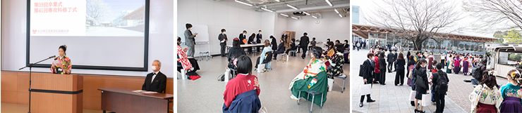また、本日やむなく列席をお控えいただいたご家族の皆様には、これまでご子弟の成長を見守りつつ、学修生活のために本学へのご支援をいただいたことに対し、厚く御礼を申し上げますとともに、教職員を代表しまして、心からお祝いと感謝の気持ちをお伝えしたいと存じます。