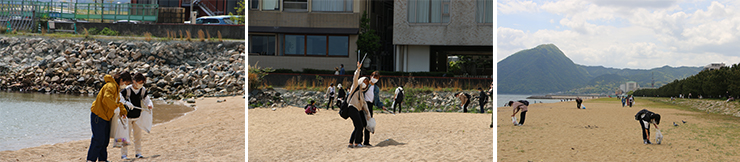 担当教員から活動の目的、別府市の特徴、観光の歴史、新型コロナウイルスがいま別府市に及ぼしている影響についての説明があり、街中から別府タワー付近にかけて歩道に落ちている空き缶などを、的ヶ浜公園から餅が浜公園にかけては、海岸沿いを中心に漂着ゴミの清掃をしました。