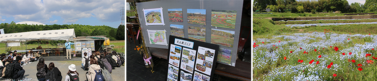 大分市で最も大きい複合商業施設「パークプレイス大分」に集合し、十分な感染症対策を講じながら歩道のごみを拾い、岡原花公園へ移動しました。「NPO法人岡原花咲かそう会」理事長の木津氏から、岡原地区に花公園を作ることになった経緯と目的、市民参加型で行っている花の植栽活動などについて詳しく教えていただき、年間5万人もの観光客が訪問するようになった花公園を見学しました。