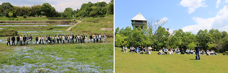 5月2日(日)、サービスラーニングの一環として大分市横尾にある大分スポーツ公園周辺の清掃活動に、33名の学生が参加し、地域の歴史や様々な課題について学びました。