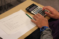 「世界がもし100人の村だったら」では、先進国・中間層・発展途上国の3グループに分かれ、様々な課題をクリアしていく。という体験をしました。“難しい計算問題を解く”という課題の際は、先進国には計算機が与えられているけれど発展途上国には計算機はなく、使いにくい鉛筆しかなかったり、“食べ物を分け与える”という課題の際は、先進国には食べきれないほどのお菓子、中間層には人数分、発展途上には一つだけ、などそれぞれに与えられた条件のもと、課題に挑戦していました。