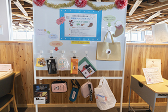附属図書館カウンターでスタンプカードを受け取り、図書貸し出しやクイズに挑戦しスタンプを3つ集めると、オリジナルグッズをプレゼントします。