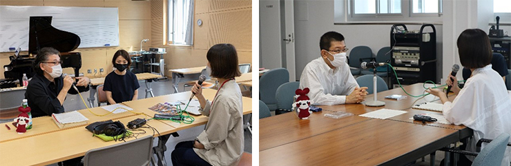 写真左:第1回放送(音楽科 行天准教授、林准教授)