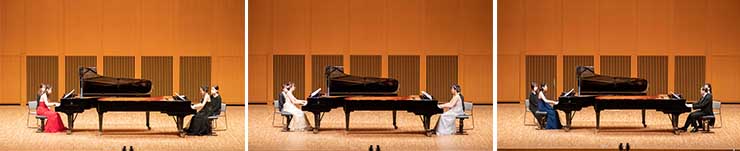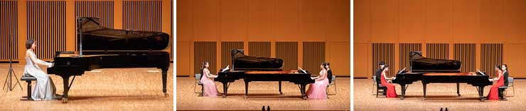 第1部のピアノ・ソロでは、短大と専攻科1年の学生7名が日ごろの練習の成果を丁寧に演奏。第2部の2台ピアノアンサンブルでは、専攻科1、2年生8名がそれぞれ息の合った演奏を披露しました。学生たちの鍛錬の成果に、会場からは大きな拍手が上がりました。