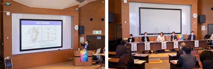 11月17日(水)、本学で大分県主催の「大分県東九州新幹線整備推進期成会シンポジウム」が行われ、国際総合学科の学生がパネルディスカッションに参加しました。