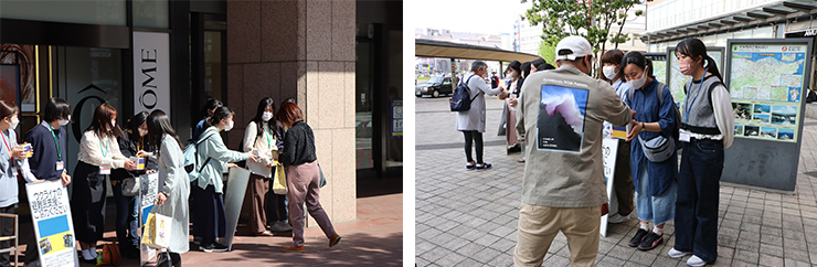 これまでに合計21名の学生が4月17日、5月15日にトキハ本店前で実施。また、4月27日に学生15名がJR大分駅前で活動し、多くの方々にご協力を頂きました。