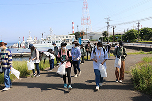 6月4日(土)、サービスラーニングの一環として乙津川清掃活動および海上保安部訪問学習を行い、本学の学生16名が参加しました。