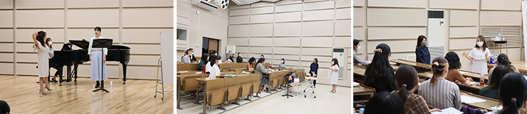 専攻科1、2年生計14名がレッスンを受け、発音や口の開きかた、歌う姿勢、発声イメージなど、一つ一つ丁寧に教えてくださいました。