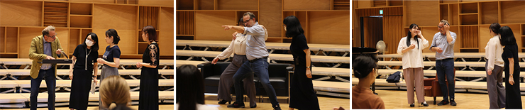 歌曲の誕生した時代背景を踏まえ、演じる役の社会的立場と人間関係を解説しながら、言葉に合わせた立ち振る舞いやその表現手法など、実演を交えて徹底的に指導していただきました。 学生達は、後半には感情豊かで堂々とした表情に変化していました。また、一流の演出家からのレッスンを受講できたことを大いに喜びました。