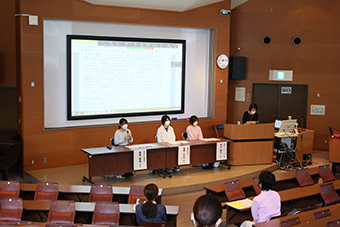 10月14日(金)、共通教育科目である「キャリアプランニング」で、「先輩方の就活体験談」と題し、内定の決まった2年生に、行きたい企業の決め手や内定までの経緯など就活体験をお話いただきました。