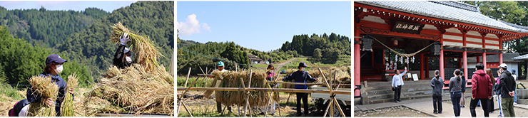 10月15日(土)、サービスラーニングの一環として、大分県竹田市において古代米の収穫および掛け干し支援を実施しました。