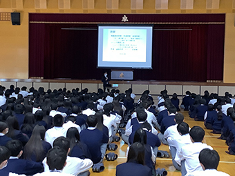 10月19日(金)、大分県立情報科学高校で全校生徒対象の情報モラル講演会が開催され、情報コミュニケーション学科の野田准教授が講演を行いました。