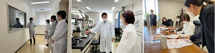 10 月 15 日(土)には枚方市内にある製造工場で表彰式が行われ、実際にデザインを考えた化粧品が製品になる工程を見学させていただき、受賞作品についてお話をいただきました。