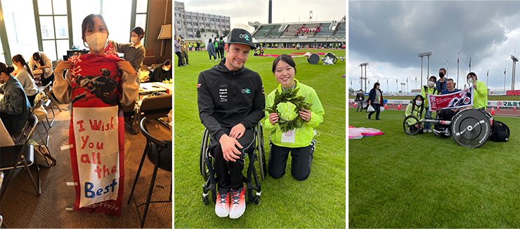 参加学生は、事前に競技に関する知識や車いすの取扱いなど、海外選手のアテンドに必要な知識を学び、選手が滞在する5日間、レースやセレモニーなどの他、練習や空港での送り迎えなど、様々な活動全般をアテンドし、楽しく交流しました。