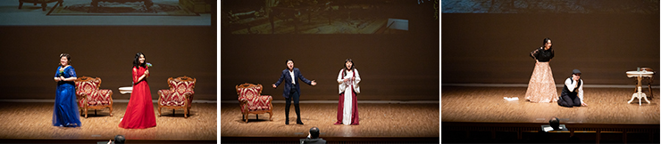 オペラハイライトは専攻科の学生たちが熱演しました。ナレーションに映像、字幕と舞台に集中できる演出で、学生たちの磨き上げた歌声と演技に観客からは大きな拍手が贈られました。