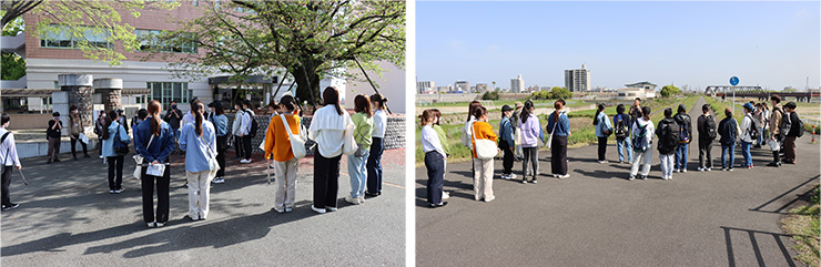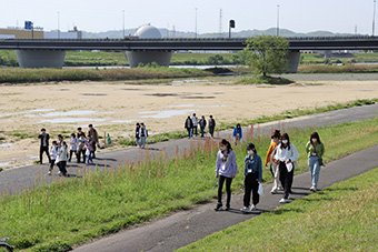 朝8時半に大学に集合し、2つのグループに分かれて大学を出発しました。宗麟大橋から河口方面に向けてごみを拾いながら美化活動に取り組みました。活動の所々で担当教員である綾部准教授から、大分川を起点とする海外貿易の歴史、国際都市として成長した豊後(府内)の特徴、その後の日本社会にもたらした医学・福祉・宗教・技術分野への影響、2027年度に完成予定の大分川の河川開発などについて説明が行われました。