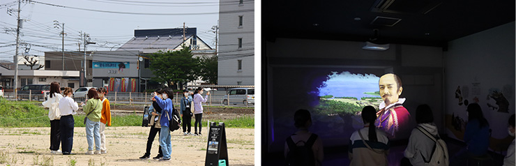 南蛮BVNGO交流館では、大友宗麟の功績や歴史についてビデオで学び、当時の建物の様子などを疑似体験できるVRアプリを使って、戦国時代の大分(豊後)について理解を深めました。学生からは「ごみが思ったより多くてびっくりした」「大友宗麟のことを知れて勉強になり楽しかった」などの感想が寄せられました。
