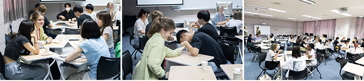 その後はグループに分かれ、お互いの好きなものや住んでいる地域などについて自由な話し合いが行われました。英語で話す中で、分からない単語はジェスチャーを使うなどして、工夫しながらコミュニケーションを取る姿が印象的でした。