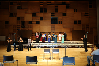 前半は初心者コース、後半は経験者コースによる2部構成のプログラムで、受講者14名がそれぞれオペラの一場面を演じ、これまでのレッスンの成果を披露しました。
