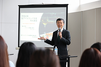 9月21日(木)、駐アイルランド日本国特命全権大使 丸山則夫 氏が本学を訪問し、学長企画「食と外交(ワインと和食と欧州・アフリカ)」と題してご講演いただきました。