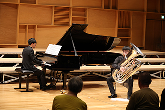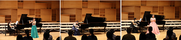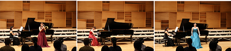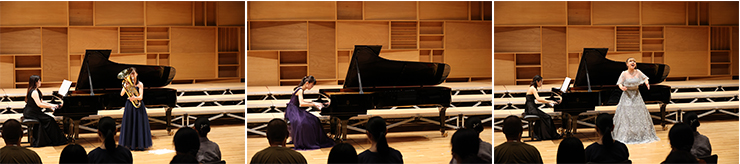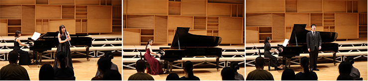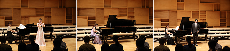 本学音楽科・専攻科音楽専攻の各コースから声楽・ピアノ・管弦打、前期実技試験成績優秀者を選抜し、独唱・独奏曲による演奏を披露するもので、今年は16名の学生が出演し、100人を超える観客が鑑賞しました。
