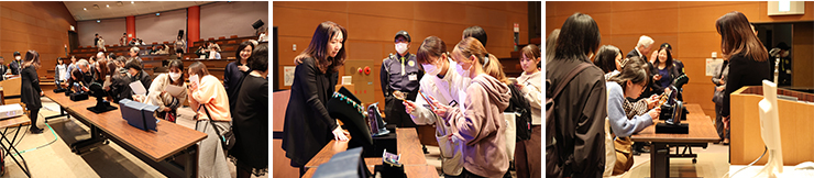 学生は実体験からの貴重なお話に興味深く聞き入り、コレクションをじっくりと鑑賞しました。