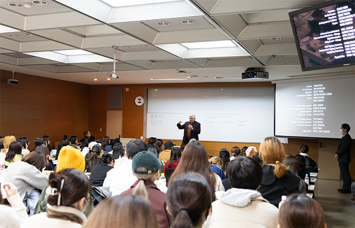 12月9日(土)、芸短フェスタ2023の一環として、アメリカ国立スミソニアン博物館学芸員 James Deutsch(ジェームス・ドイッチュ)氏を特別講師にお招きし、「ミニ アメリカ映画祭」を本学視聴覚室において開催しました。