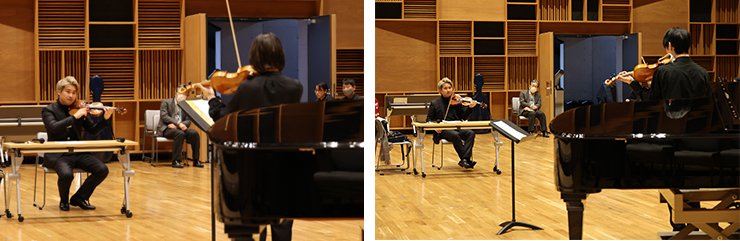 音楽科管弦打コースの学生2名がヴァイオリン・ソロ マスタークラスを受講し、弦の操り方やポイントなど、マンツーマンの指導を受けました。