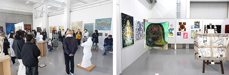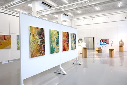 美術科美術専攻1年生30名と、専攻科造形専攻美術コース1年生10名の学生による作品を展示。アフターコロナとなったこともあり、期間中は県内外から学生の保護者を始め、近隣住民、高校生など多くの方々にご来場いただきました。