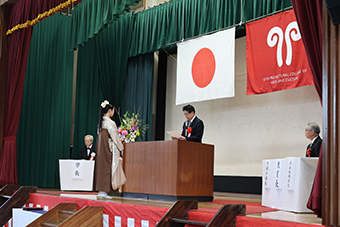 そして、ご家族の皆様には、これまでご子弟の成長を見守りつつ、学修生活のために本学へのご支援をいただいたことに対し、厚く御礼申し上げます。教職員を代表いたしまして、心からお祝いと感謝の気持ちをお伝えいたします。また、ご多用の中、尾野副知事を始めご来賓の皆様方にご臨席を賜りましたことに感謝の意を表したいと思います。