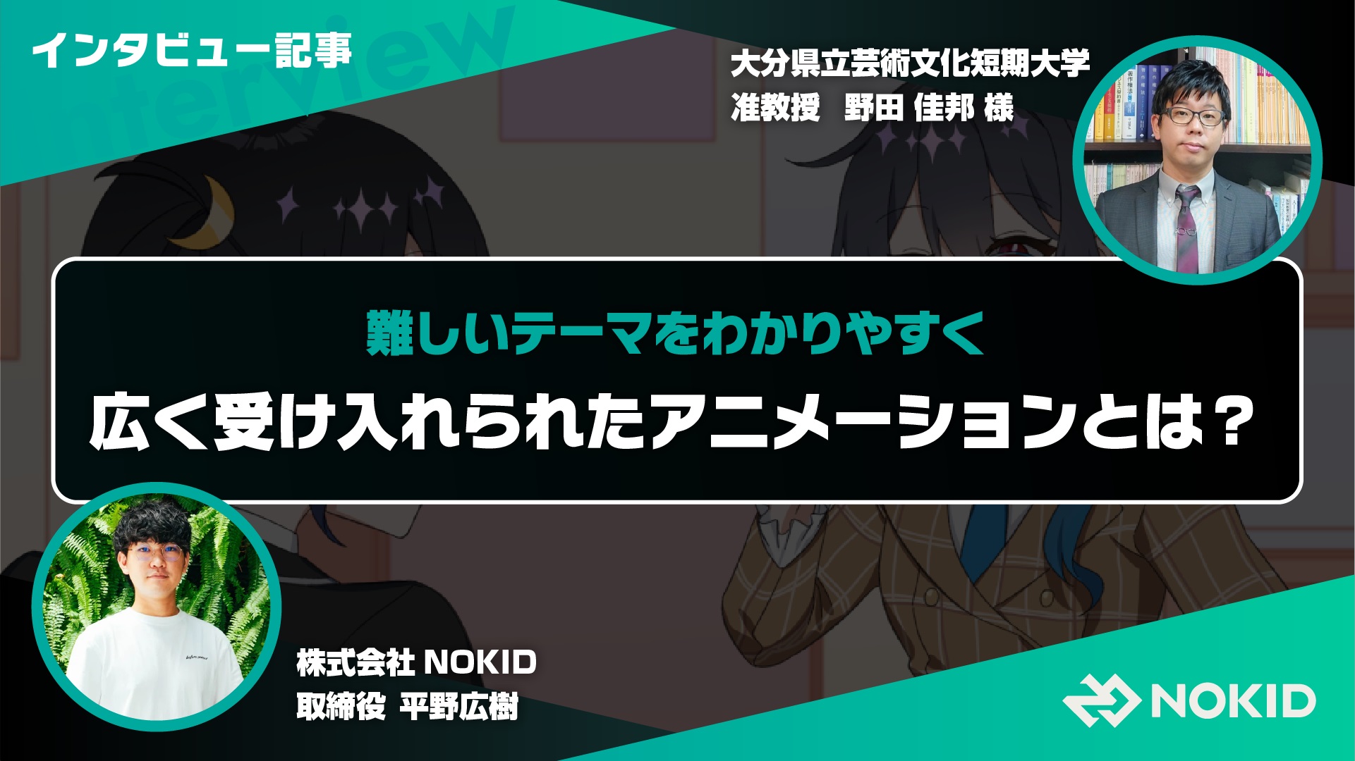 今回、野田研究室が、学生主体で行っているアニメ教材制作プロジェクトについて、2年間の取組みを振り返ったインタビュー記事が、株式会社NOKID様のHPで公開されました。