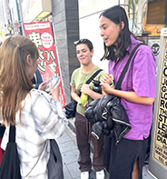 1年生の藤井さんは「海外の方へ声をかける事は自分の英語力を相手に受け入れてもらえるか不安がありましたが、自分に自信を持って笑顔で話すことで会話ができました。楽しく学びのある時間になりました。」と話されていました。