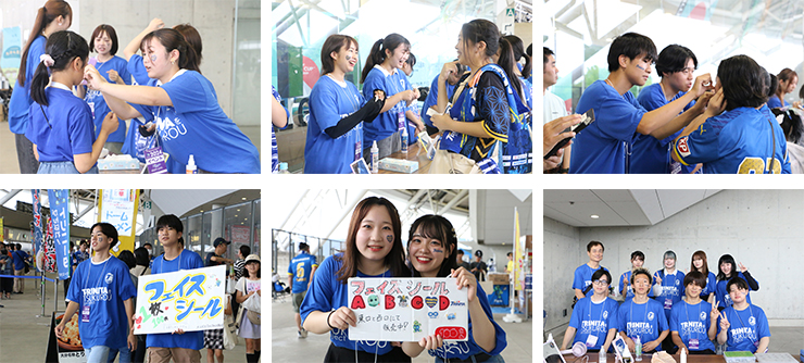 【サービスラーニング】大分トリニータの集客活動でフェイスシール販売を実施しました