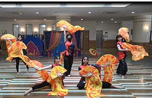 このライブには、入院患者さんやグループホームの利用者さん、地域住民が集いました。本学の音楽科学生による演奏と歌唱や美術科学生のアート作品展示、大学のサークルからは演劇サークルとベリーダンスチームによるパフォーマンスを披露しました。