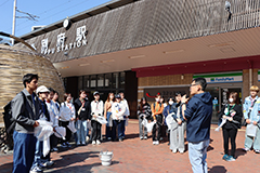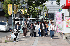 活動では最初にJR別府駅に集合し、担当教員から別府市の観光の歴史や同市の特徴などについて説明が行われました。別府駅から別府タワーにかけて歩道を清掃し、次に的ヶ浜公園から餅が浜公園にかけての海岸沿いを清掃しました。所々で担当教員から、流れ着くゴミが環境に及ぼす影響、大分の観光開発の特徴などについて説明が行われました。