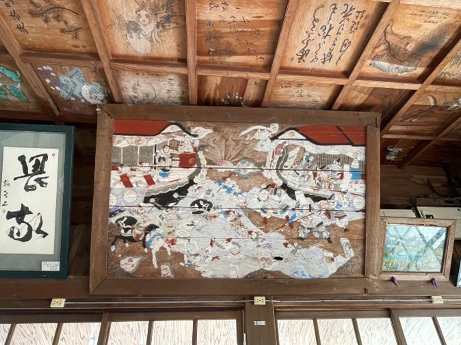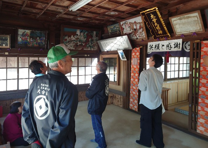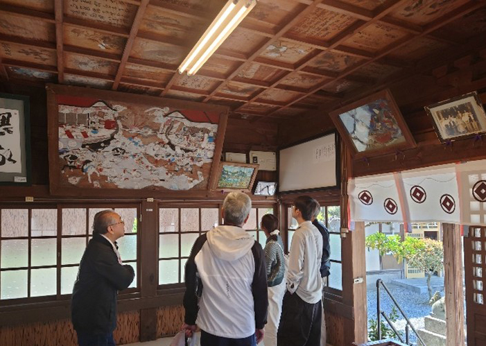 今回の調査では、大絵馬の現状を把握するため、まず現地にて対象となる絵馬の確認を行いました。今後は、大絵馬の由来や意匠、地域文化との関係について、さらに詳細な記録と分析を進めていく予定とのことです。