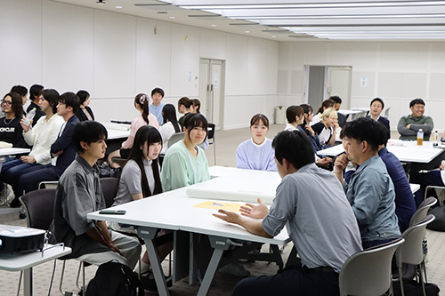 5月21日(水)に、九電大分ビルにおいて、2025年度の「おおいた活性化ネットワーク」の第1回会議が開催されました。大分活性化ネットワークは、大分青年会議所(JCI)が毎年実施している活動の1つで、大分県内の大学生が協力をして、大分のまちを活性化することを目的として取り組まれているものです。本学ではサービスラーニングの一環として取り組み、今年度で15回目の参加になります。会議には、大分県立芸術文化短期大学、大分大学、日本文理大学、立命館アジア太平洋大学(APU)から約40名の学生が参加しました。