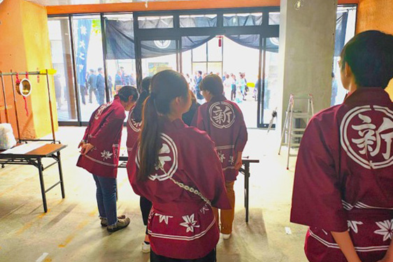 当日は、新大工町の地域の皆さまと共に、町事務所の設営や配布物の仕分けなどに従事し、地域が一体となって行事を支える様子を間近で体感しました。学生たちは、伝統行事の運営に直接関わることで、その文化的価値や地域に根ざした行事の意義を深く学ぶことができたようです。