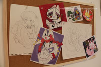 ビジュアルデザイン2年の安藤萌美さん、内野優子さん、高橋若奈さん、泥谷夏輝さん、山本愛さんの個性豊かな5人が、アナログイラストやデジタルイラスト、写真など、それぞれが独自に制作に取り組んでいる作品を展示しています。