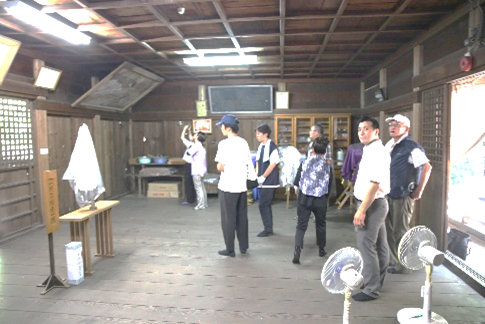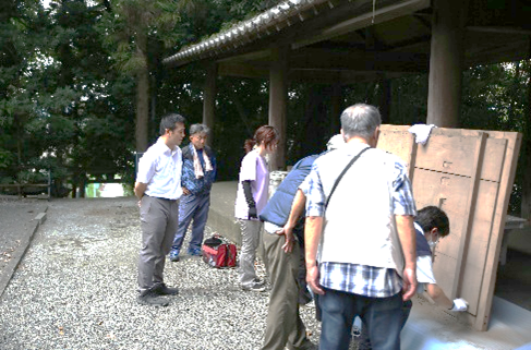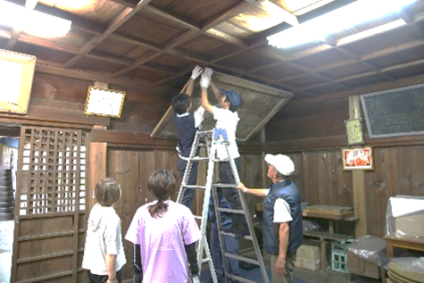 8月26日(火)、大分市の弥栄神社が所蔵する「素戔嗚尊八岐大蛇退治図絵馬」の取り外し作業とクリーニング、調査を実施しました。