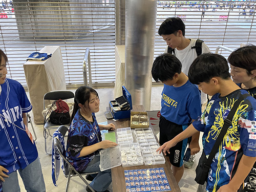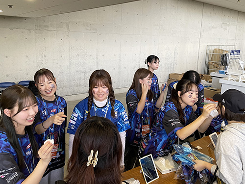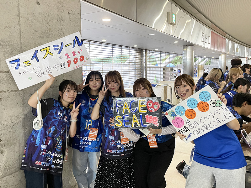 9月20日(土)に、サービスラーニングの一環として、クラサスドーム大分で開催されたサッカーJリーグ・大分トリニータ対レノファ山口戦において、フェイスシールの販売活動を行いました。