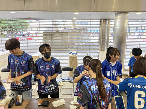 今回の活動は5月・6月に続き3回目となります。夏休み明け直後の実施で準備期間が限られていましたが、SNSでの情報発信に力を入れました。X(旧Twitter)とInstagramを活用し、選手5名の協力を得て広報動画を制作。メイキング映像を含めた計4本を順次配信し、多くの再生回数を記録しました。(以下のURLからご覧になれます)