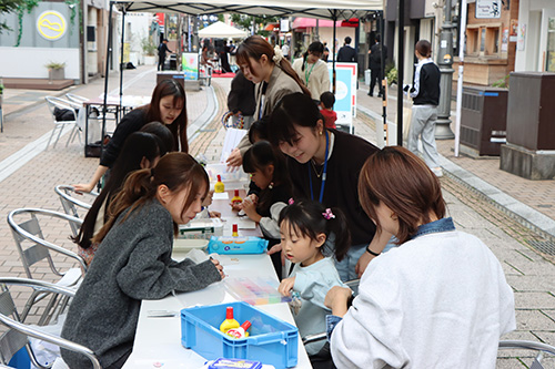 11月1日(土)に、大分市にある府内五番街商店街において、サービスラーニングの一環として「ふないキッズフェスタ2025」を開催しました。この活動は、大分市府内五番街商店街の活性化を支援することを目的として取り組んだもので、約60名の学生が参加しました。今回の活動を実施するにあたり、商店街組合の皆さんに地域社会特講Ⅰ(前期)で講義を頂き、その後は学生が主体となる形で準備を進めてきました。