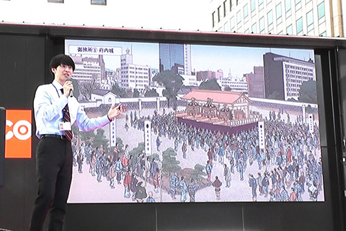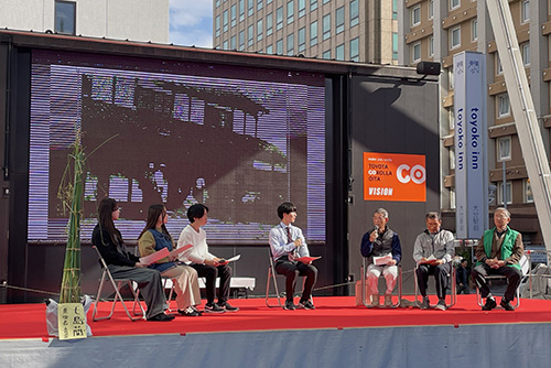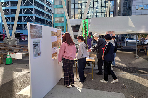 学生たちはイベントの一画をお借りし、近世府内の経済を支え、昭和30年代頃まで大分市内で生産されていた「七島藺」の文化的記憶を後世に残そうと、生産者の方々を対象に聞き取り調査を行いました。現在、七島藺は地理的表示保護制度(GI)に「くにさき七島藺表」として登録され、国東地方でのみ生産が行われています。