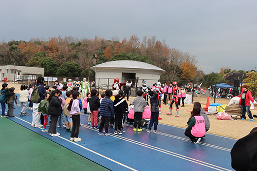 また当日は同じ会場で「鶴崎元気まつり」が開催され、参加した学生達は、徒競走、綱引き、玉入れなどの支援を行うとともに、「イスー1グランプリ」の会場ではコース整備や子供向けイベントの支援を行い大会を盛り上げました。