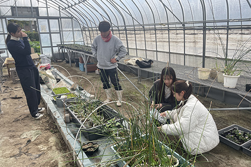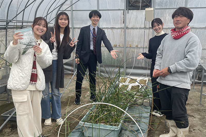 12月25日、国際総合学科の学生が、鹿児島大学教育学部の実習地において七島藺のサンプリング調査を実施しました。本調査は、国際総合学科・歴史観光学研究室が取り組むフィールドワーク支援事業の一環として行われたものです。